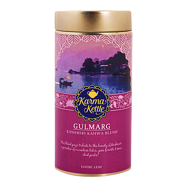 Karma Kettle Gulmarg Kashmiri Kahwa Tea is a delightful blend that captures the essence of traditional Kashmiri tea. This unique beverage combines high-quality green tea with a medley of natural ingredients including almonds, apricots, and aromatic spices. The infusion of saffron adds a luxurious touch, making each cup a soothing experience. Ideal for those seeking a flavorful yet healthful drink, this tea not only pleases the palate but also offers numerous health benefits. Enjoy it hot or cold, and let the enchanting flavors transport you to the serene valleys of Kashmir.