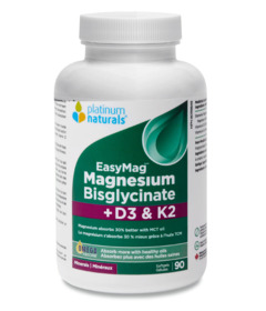 Platinum Naturals EasyMag + D3 & K2 is a premium dietary supplement designed to support overall health and wellness. This unique formulation combines magnesium with vitamins D3 and K2 to promote optimal bone health, cardiovascular function, and muscle relaxation. Magnesium plays a crucial role in over 300 biochemical reactions in the body, making it essential for maintaining energy levels, muscle function, and nerve transmission. The addition of vitamins D3 and K2 enhances calcium absorption and utilization, ensuring that your bones remain strong and healthy. This product is ideal for individuals seeking to improve their nutritional intake and support their active lifestyle.